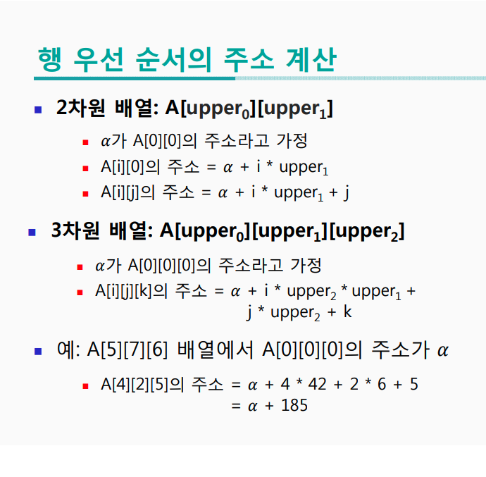 다차원 배열을 저장하는 방법 중 행우선순서의 두가지 주소계산법을 적으시오.